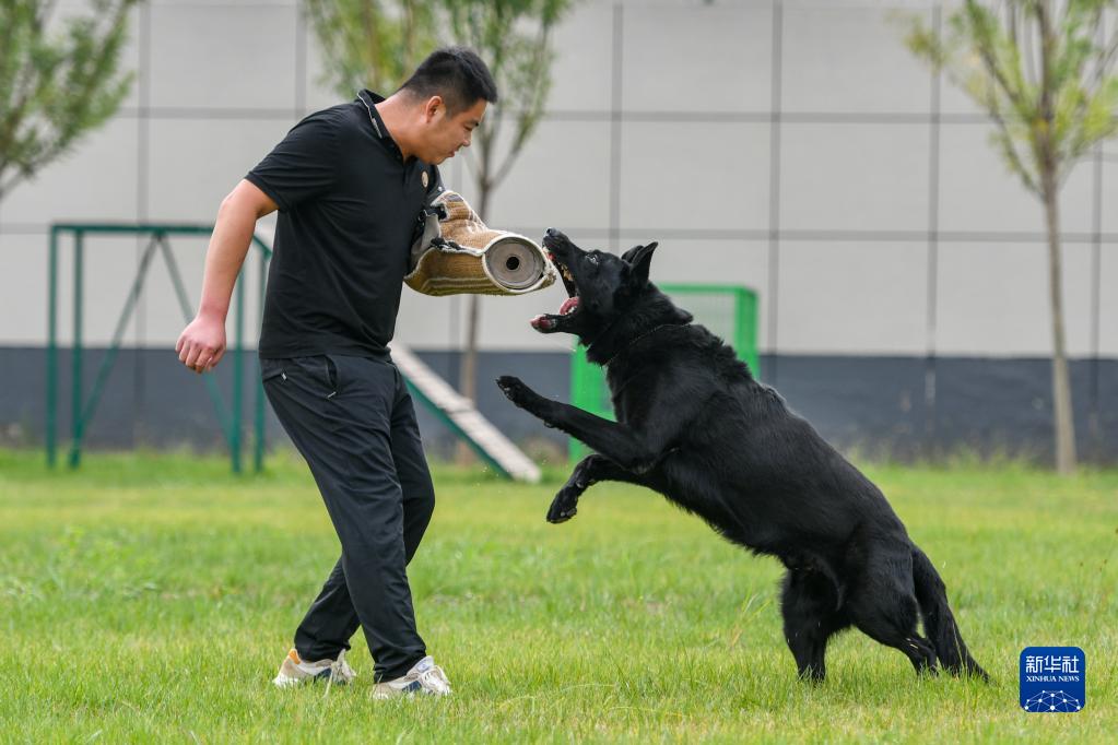 9月20日,治安犬“黑豹”進行撲咬訓練。