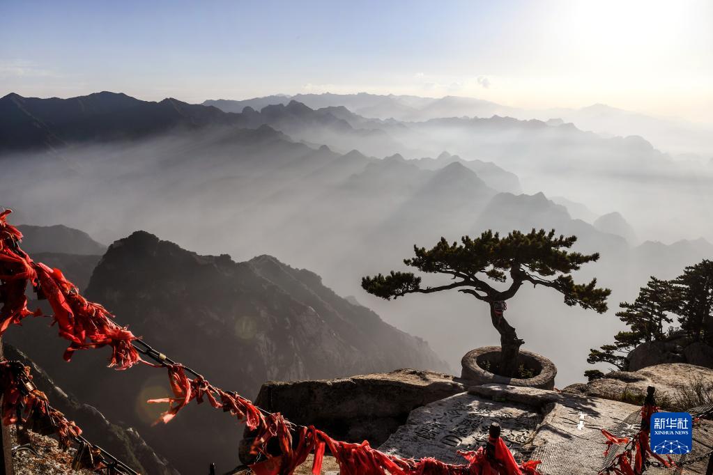 9月25日,夕陽西下,雨后初霽的西岳華山,云霧縈繞,宛如仙境(無人機照片)。