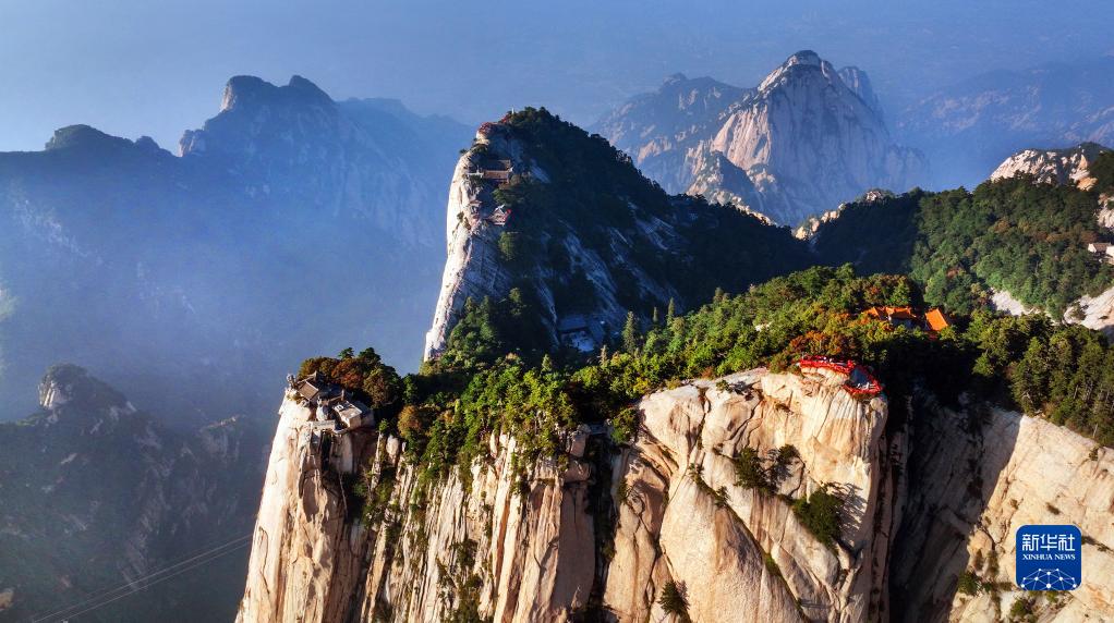 9月25日,夕陽西下,雨后初霽的西岳華山,云霧縈繞,宛如仙境(無人機照片)。