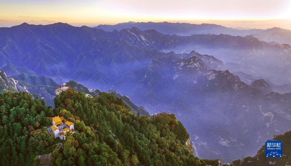 9月25日,夕陽西下,雨后初霽的西岳華山,云霧縈繞,宛如仙境(無人機(jī)照片)。
