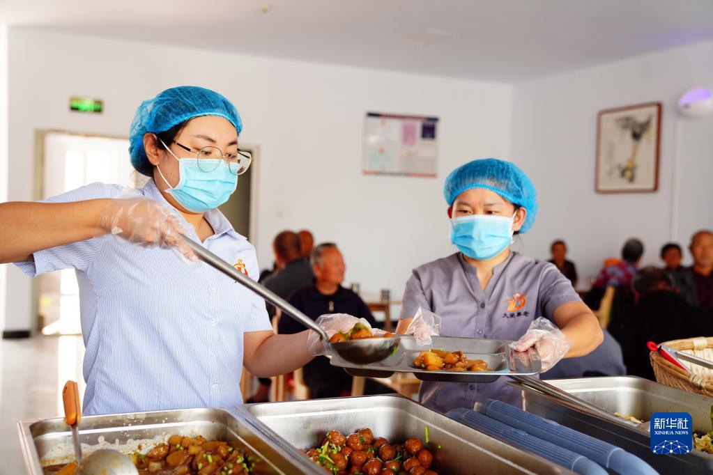 9月25日,在惠民縣何坊街道“孝善食堂”,工作人員為老人準備午餐。