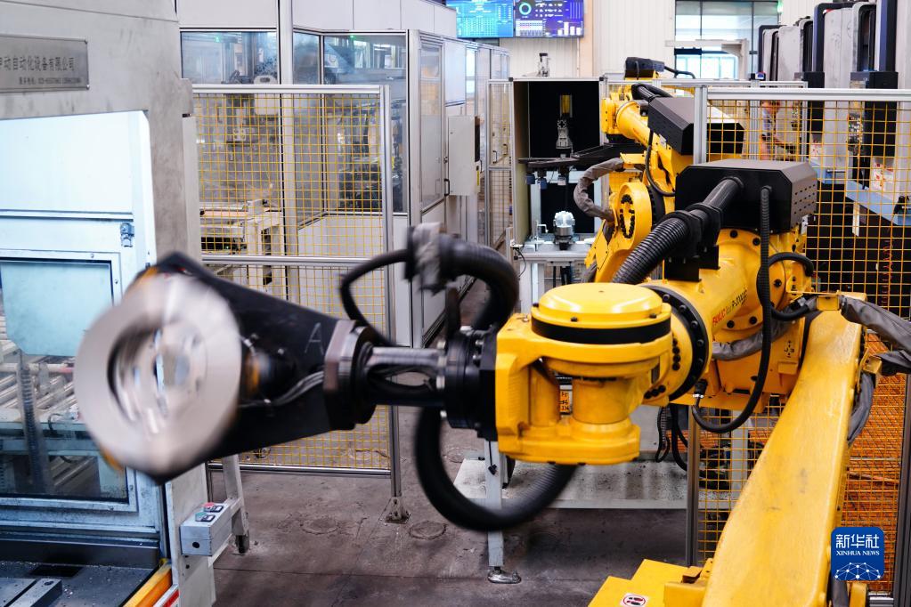 9月25日,在山東惠宇汽車零部件有限公司,工業機器人在加工制動盤。