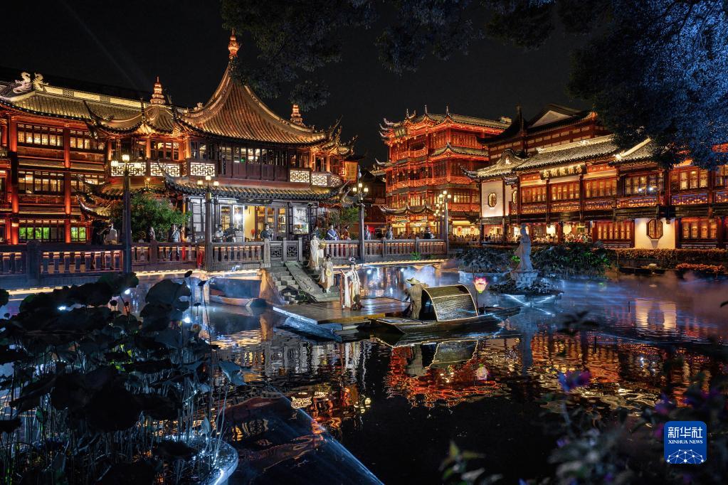 金秋時節,夜幕降臨的上海豫園商城上演江南仲秋游園場景,給市民和游客帶來一場浪漫的國風沉浸式體驗。