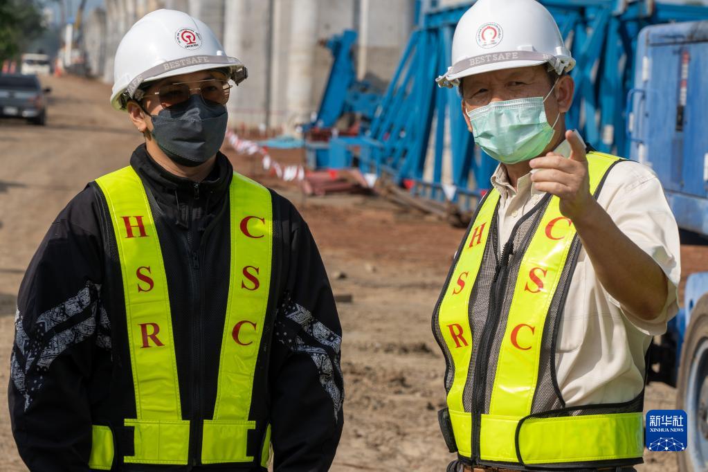 9月7日,在泰國呵叻,中泰鐵路項目部監理四組副組長威羅(右)和中泰鐵路項目部監理總站專職翻譯南塔蓬在建設現場討論工作。