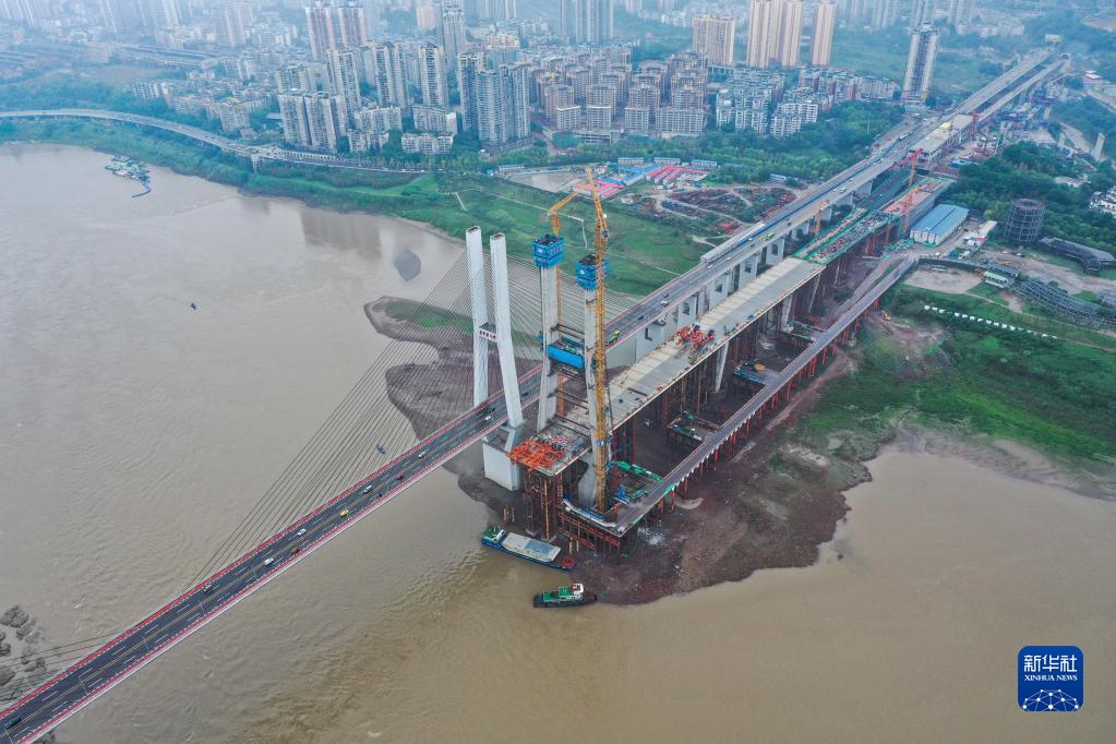 當日,由中國鐵建大橋局承建的重慶軌道交通18號線李家沱長江復線橋南岸主塔順利封頂。李家沱長江復線橋為重慶軌道交通18號線的控制性工程,工程起于九龍坡區九龍半島,止于巴南區李家沱,全長約1306米,主橋為雙塔雙索面斜拉橋,于現有的李家沱長江大橋上游側約52米處平行跨越長江。