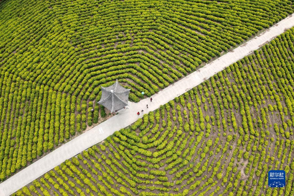 秋日里,安徽省宣城市郎溪縣濤城鎮大佛山養心谷的黃金茶園景色宜人,茶樹層層疊疊、錯落有致,呈現出一幅美麗的秋季畫卷。