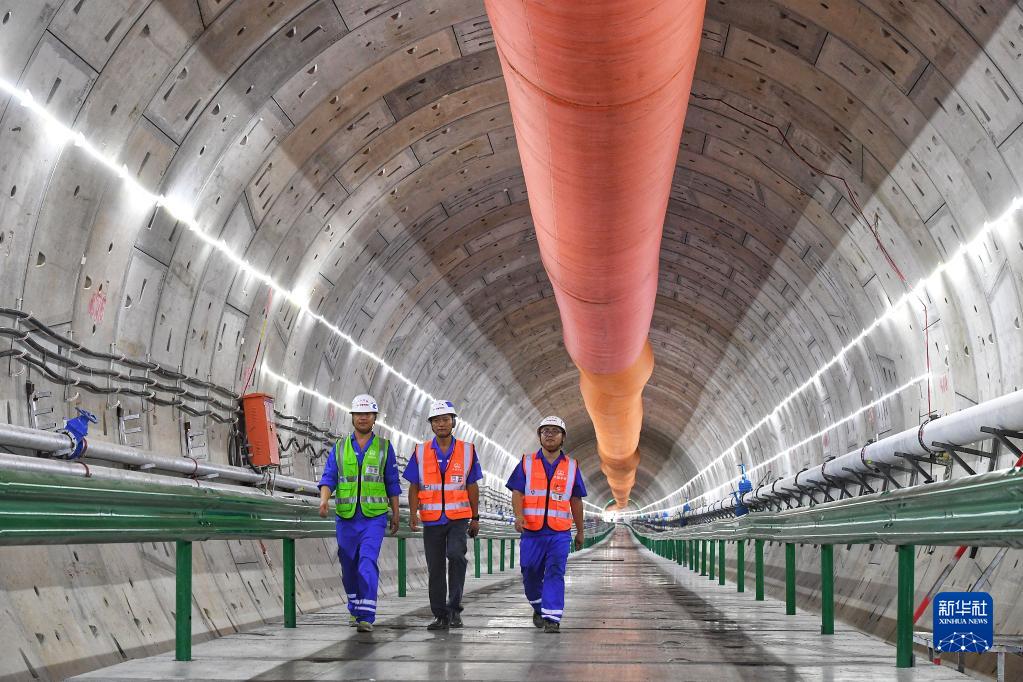 9月27日,施工人員行走在深江鐵路珠江口隧道廣州南沙段。