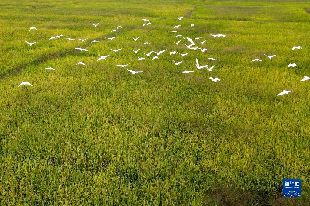 眼下正是秋收時節,在安徽省郎溪縣飛鯉鎮,稻香撲鼻,白鷺飛舞,一派金秋美麗景象。