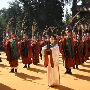 9月28日,在壬寅年祭孔大典上,工作人員在進行樂舞告祭。