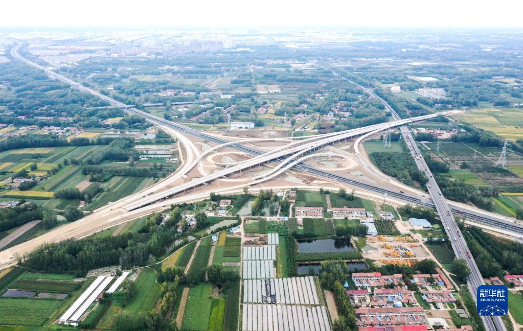 與京滬高速公路互通的連宿高速公路沭陽南樞紐正在建設中(9月27日攝,無人機照片)。