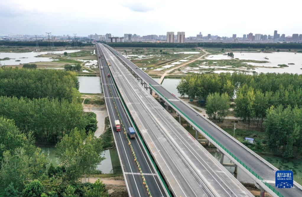 擴建中的新沂河特大橋正在施工中(9月27日攝