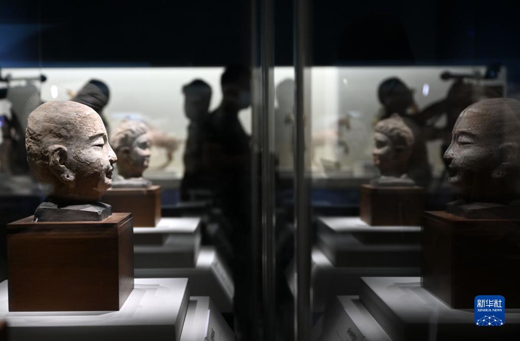 這是展出的故宮博物院藏唐代泥塑阿難頭像(9月28日攝)。