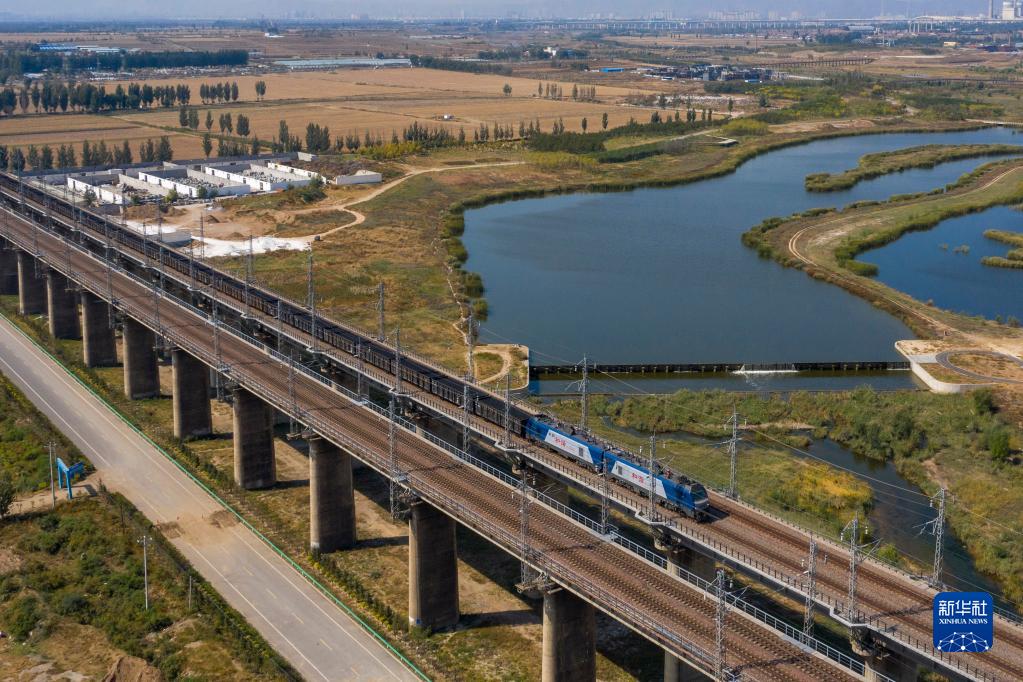 重載列車(chē)行駛在大秦鐵路上(9月28日攝,無(wú)人機(jī)照片)。