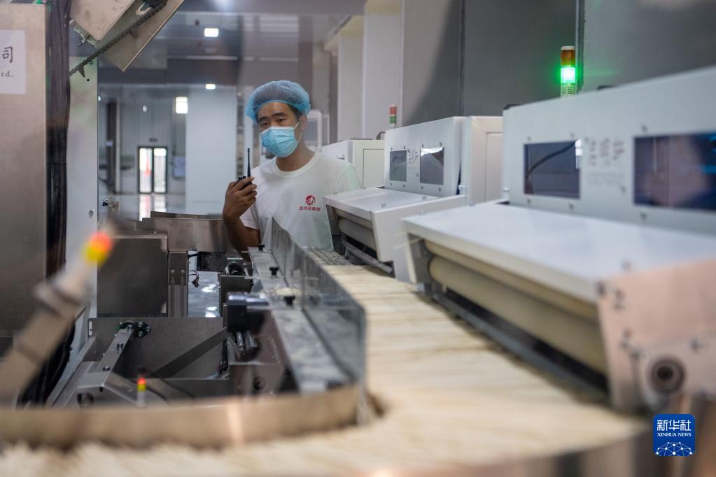 9月29日,在位于重慶忠縣新生港的重慶金沙河面業(yè)生產(chǎn)車間,工作人員在生產(chǎn)線上忙碌。