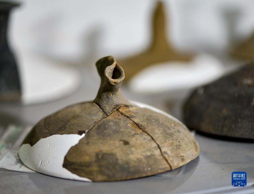 這是此次考古發掘出土的陶制器蓋(9月27日攝)。