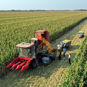 當日,山東德州樂陵市“噸半糧”核心區玉米開始收割,農戶運用大馬力收割機、翻耕機等現代化農機裝備進行勞作,田間地頭一派繁忙秋收景象。