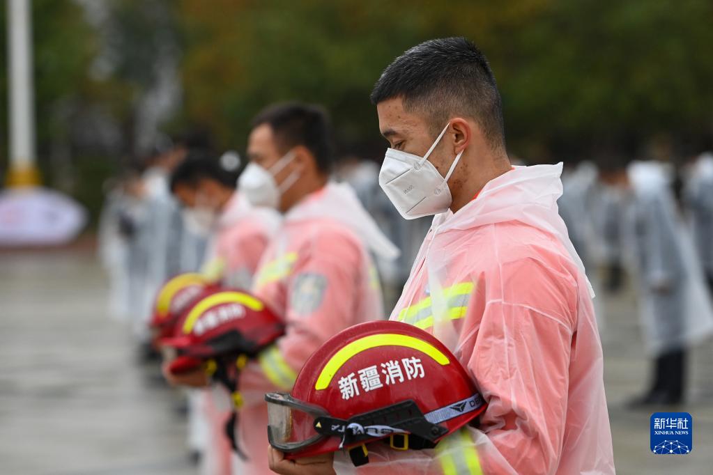 9月30日,在新疆烏魯木齊市人民廣場,參加烈士紀念日活動的代表默哀。