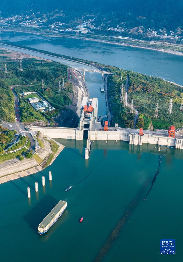 2022年9月29日,船舶有序通過三峽升船機(無人機照片)。