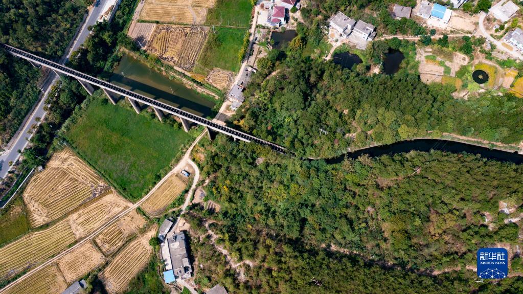 湖北白蓮河水庫的庫水經(jīng)東干渠流向黃岡市浠水縣和蘄春縣(無人機(jī)照片,2022年9月27日攝)。