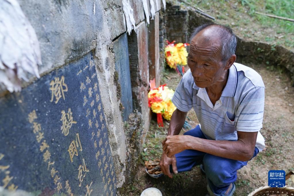 在江西省贛州市于都縣寬田鄉(xiāng)石含村,有一座紅軍烈士墓,埋葬著鄧毅剛烈士的遺骨。石含村的謝家祖孫六代從1932年起守護烈士墓,至今已90年。如今,七十多歲的謝南京還是堅持帶著家人經(jīng)常來到鄧毅剛烈士墓前,為這位“鄧爺爺”掃墓。