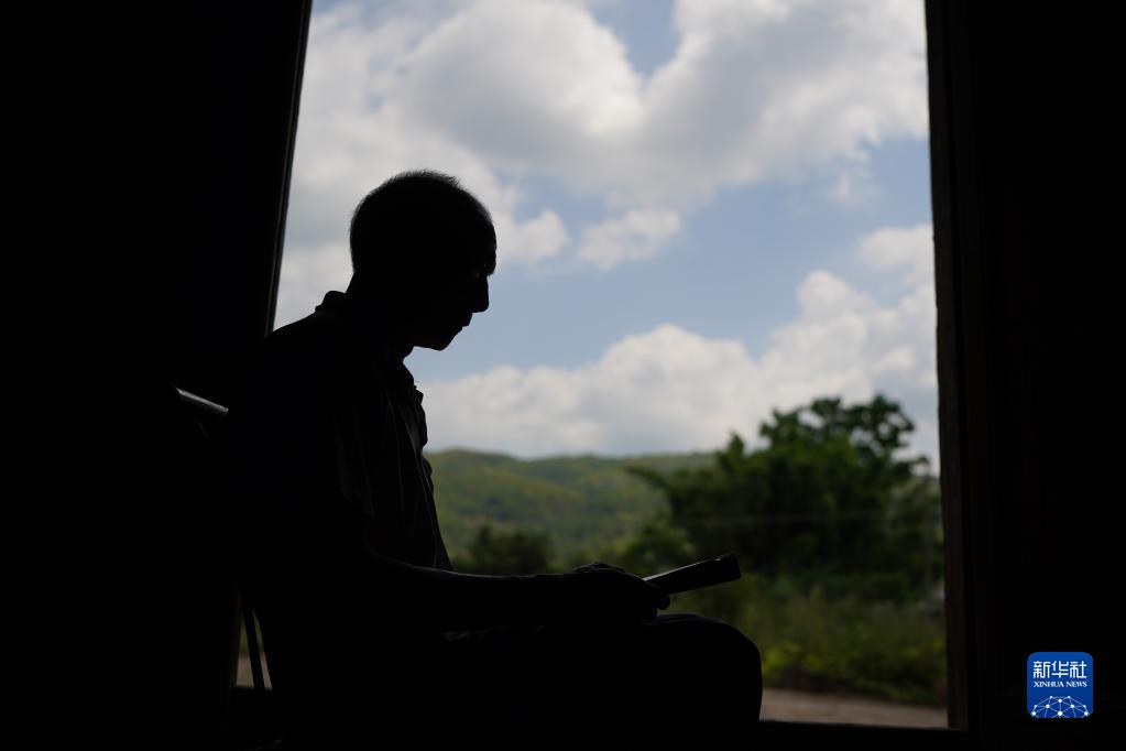 9月15日,謝南京坐在家門口翻看鄧毅剛烈士的照片。