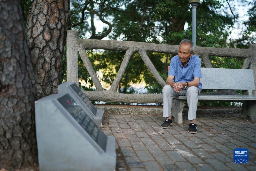 9月16日,紅軍烈士華欽材的后代華從祁坐在松樹(shù)下與松樹(shù)“說(shuō)話”。