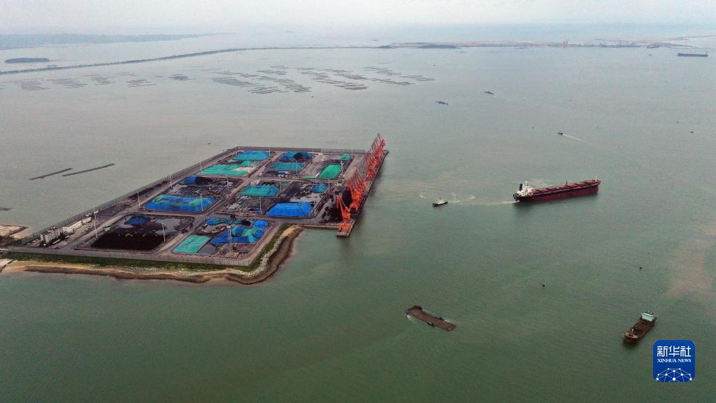 9月29日,在新建的北部灣港欽州集裝箱自動化碼頭,一艘卸完貨物的海輪正在駛離(無人機照片)。