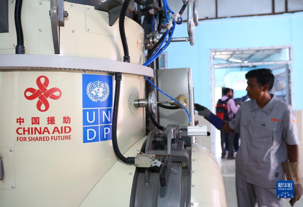 9月29日,在尼泊爾南部比爾甘杰市,納拉亞尼醫院的工作人員操作中國援助的醫療垃圾處理設備。新華社發(哈里·馬哈爾詹攝)