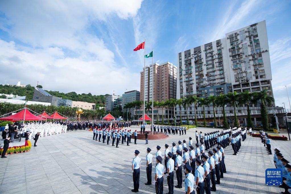10月1日,澳門特別行政區(qū)政府在金蓮花廣場舉行升旗儀式,慶祝中華人民共和國成立73周年。新華社記者 張金加 攝