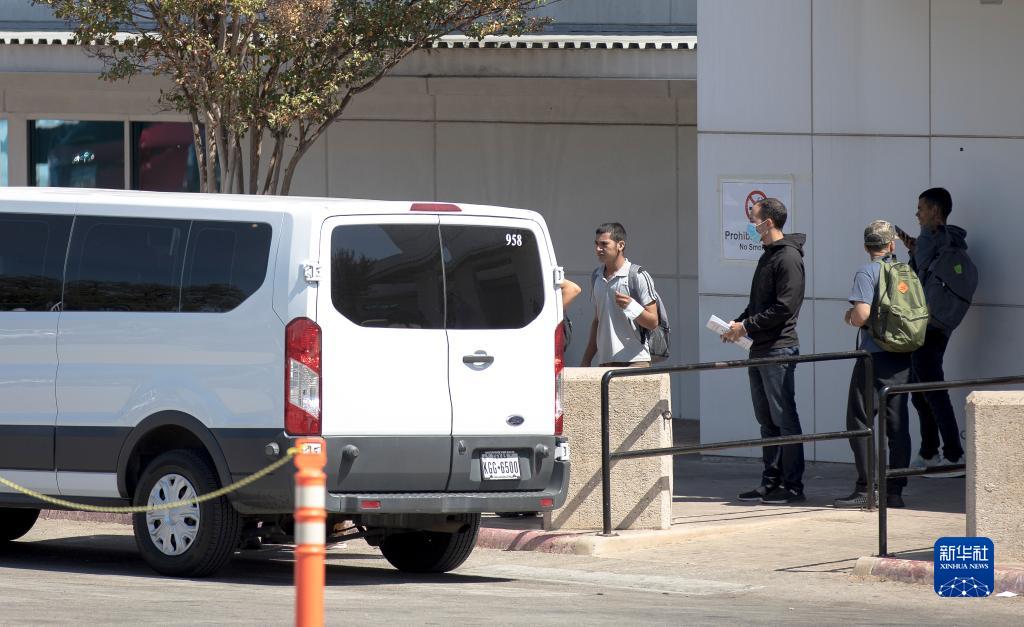 9月30日,在美國得克薩斯州圣安東尼奧,移民排隊登上轉送車輛。