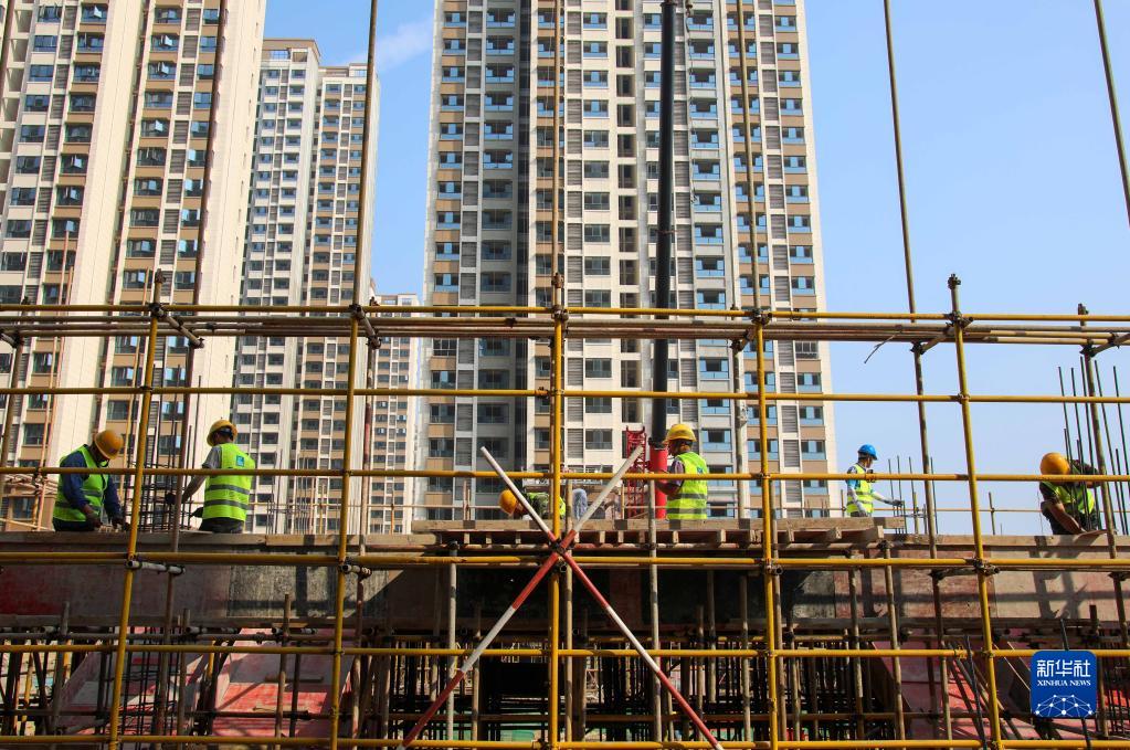 10月1日,工人在中建二局合肥城西橋家園A組團(tuán)項(xiàng)目工地作業(yè)。