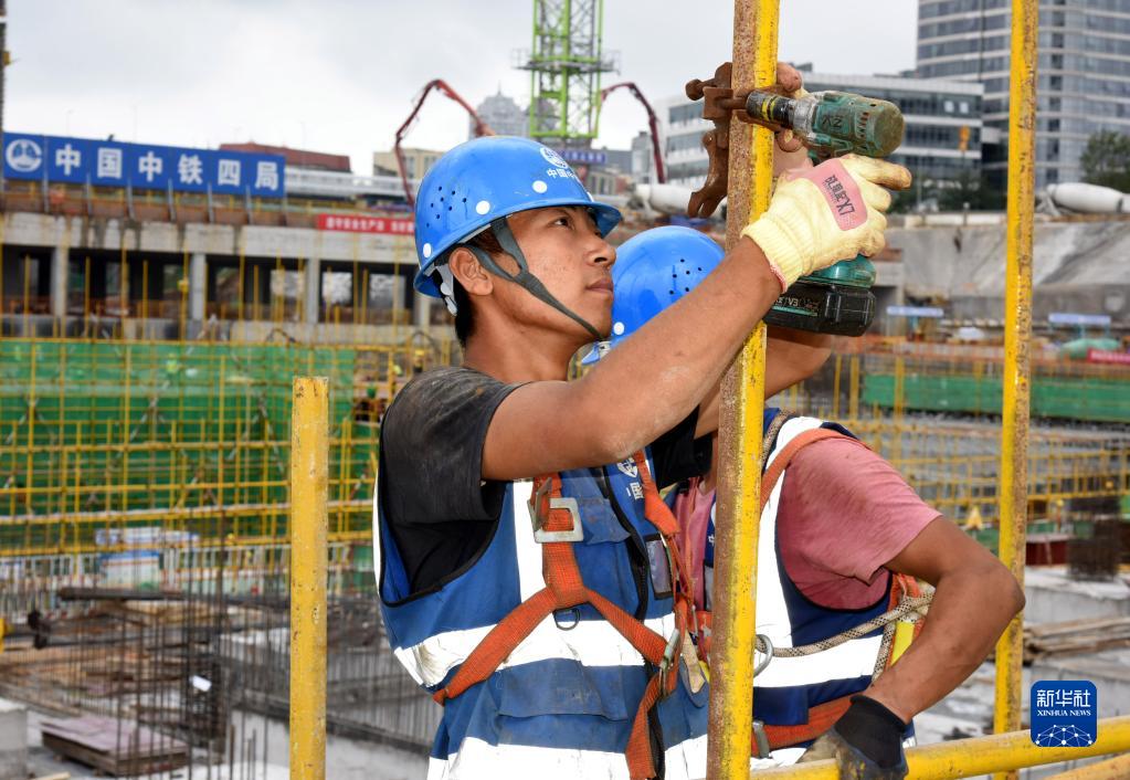 10月1日,在青島國際郵輪母港區(qū)啟動區(qū)地下空間項目工地,中鐵四局的架工班工人許洪澤在工地上忙碌。