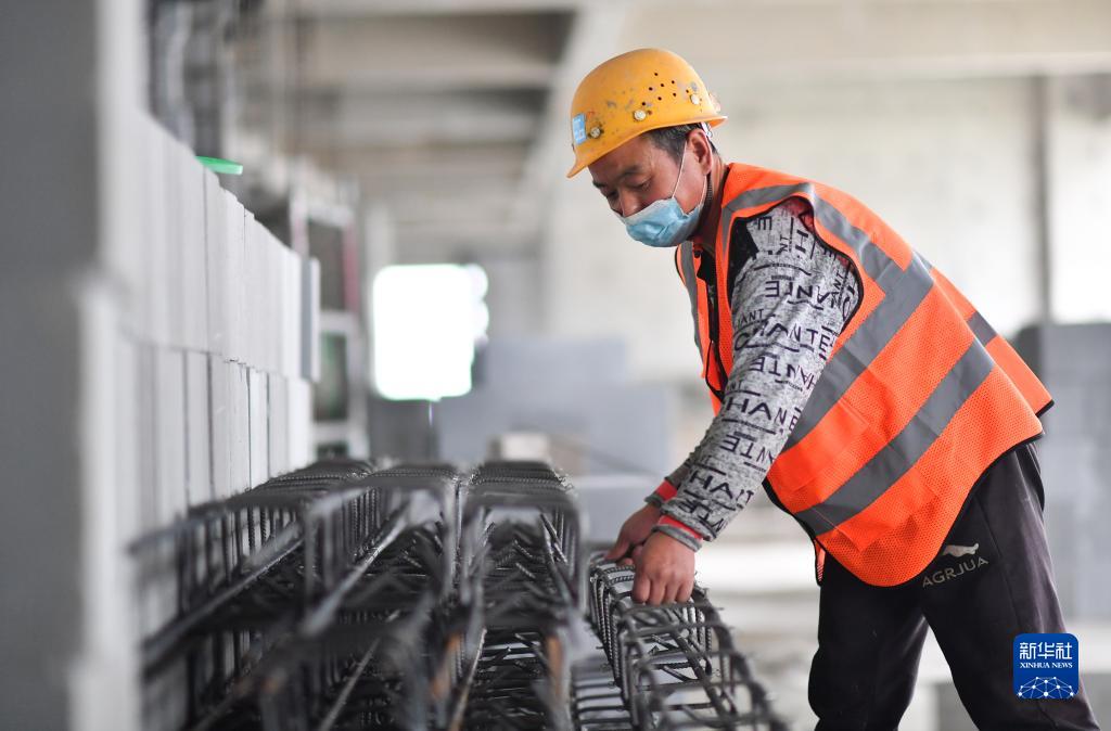 10月1日,中建三局西北公司工人在陜西省西安市紅會醫院高鐵新城院區建設項目工地施工。
