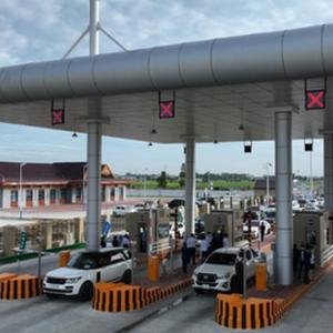 10月1日,車輛駛過柬埔寨金港高速公路金邊站。