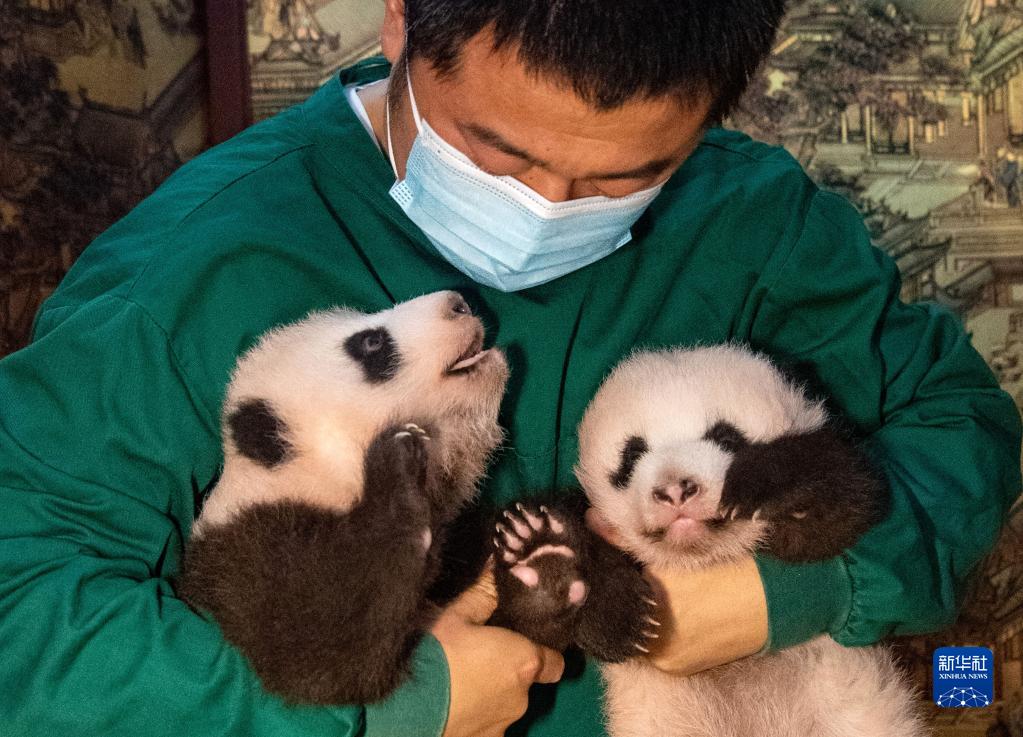當日,在重慶動物園大熊貓館,7月22日出生的雙胞胎大熊貓幼仔與游客首次見面,這對雙胞胎兄妹目前健康狀況良好。它們的母親“二順”曾作為友好使者,從2013年3月起旅居加拿大多倫多動物園和卡爾加里動物園,2020年11月底回國,今年3月在中國大熊貓保護研究中心與大熊貓“青青”完成自然交配。