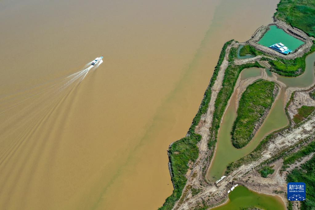 這是在山東黃河三角洲國家級自然保護區(qū)拍攝的黃河河道(8月17日攝,無人機照片)。