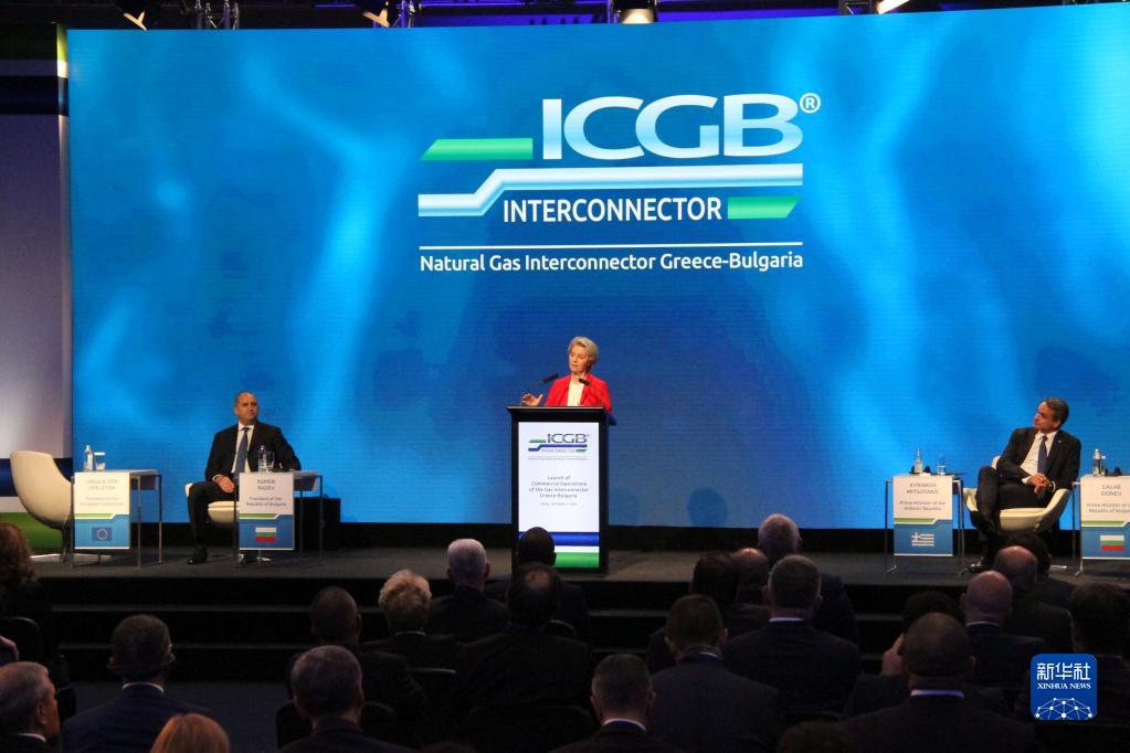 10月1日,歐盟委員會(huì)主席馮德萊恩在出席希臘-保加利亞天然氣管道商業(yè)運(yùn)營(yíng)啟動(dòng)儀式上講話。