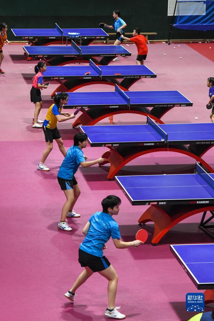 學員在成都市全國重點乒乓球運動學校訓練(9月29日攝)。