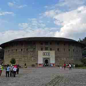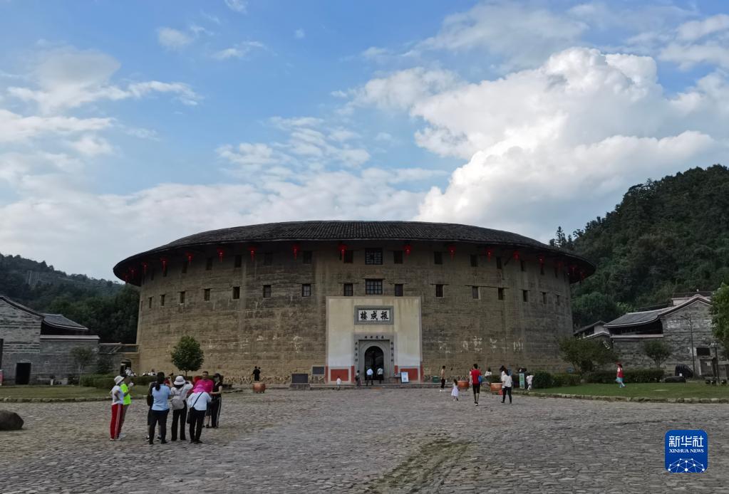 10月1日,游客在福建省龍巖市永定區湖坑鎮洪坑村振成樓景區游玩。新華社記者 秦宏 攝