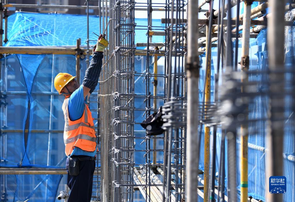 10月3日,工人在中鐵四局合肥市瑤海區(qū)荷塘家園一期二標(biāo)安置房項目現(xiàn)場施工。