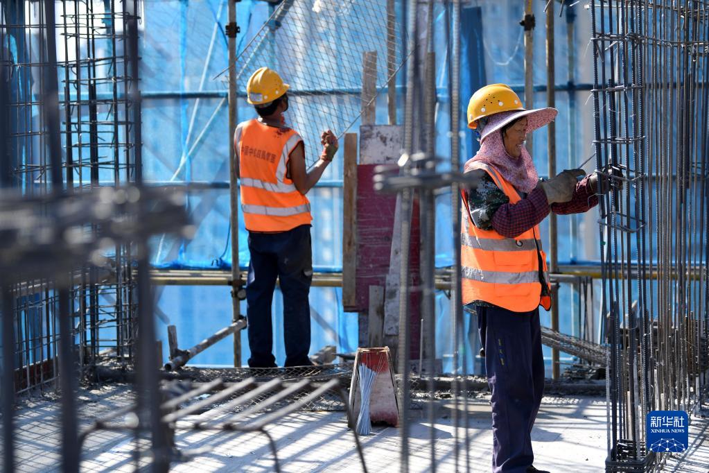 10月3日,工人在中鐵四局合肥市瑤海區荷塘家園一期二標安置房項目現場施工。
