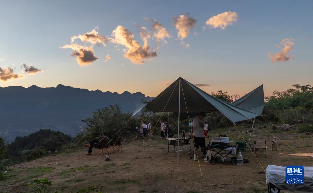 10月2日,游客在重慶市南川區(qū)三泉鎮(zhèn)馬嘴村露營游玩。