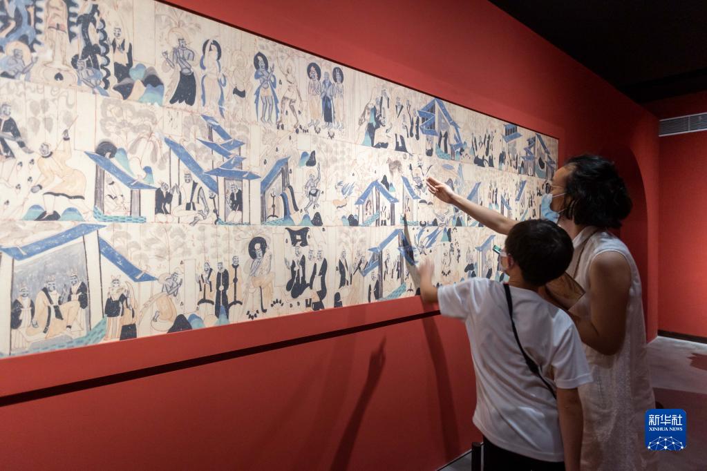 “遇見敦煌 光影藝術(shù)展”將于10月4日在遇見博物館·上海靜安館開展。3日,部分媒體及觀眾提前參觀體驗。該展以敦煌文化藝術(shù)為核心,以藝術(shù)家重繪的200余幅敦煌石窟壁畫作品為基礎(chǔ),通過3D光雕技術(shù)和數(shù)十臺4K超清設(shè)備,在投影面積達1300平方米的空間中展現(xiàn)敦煌石窟的藝術(shù)魅力,為觀眾帶來沉浸式體驗。新華社記者 王翔 攝