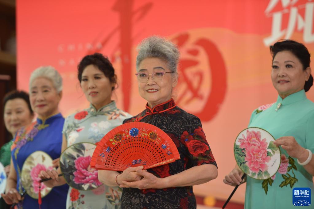 10月3日,75歲的韓香巧(右二)在河北省石家莊市新華區(qū)一家養(yǎng)老機(jī)構(gòu)進(jìn)行模特表演。韓香巧從70歲開始學(xué)習(xí)模特表演,如今她成為了當(dāng)?shù)啬挲g最高的模特隊(duì)員。