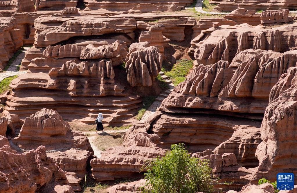 國慶期間,重慶市酉陽縣紅石林地質公園開園迎客,不少游客前來感受這里獨特的地質奇觀。