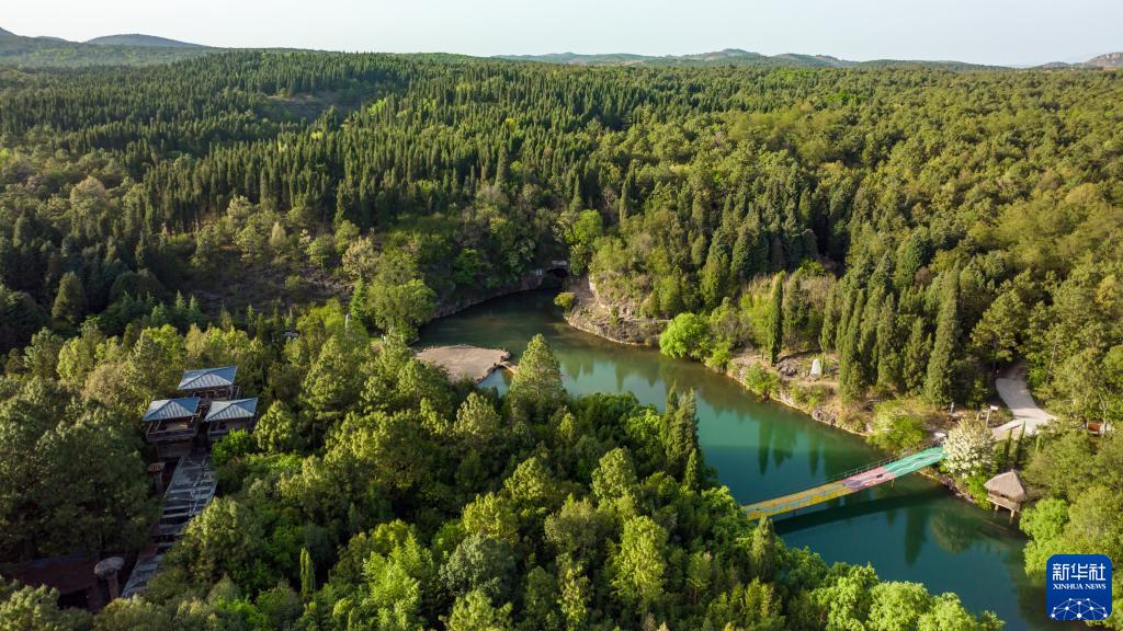 俯瞰位于云南省曲靖市沾益區的珠江源(無人機照片,2022年4月12日攝)。