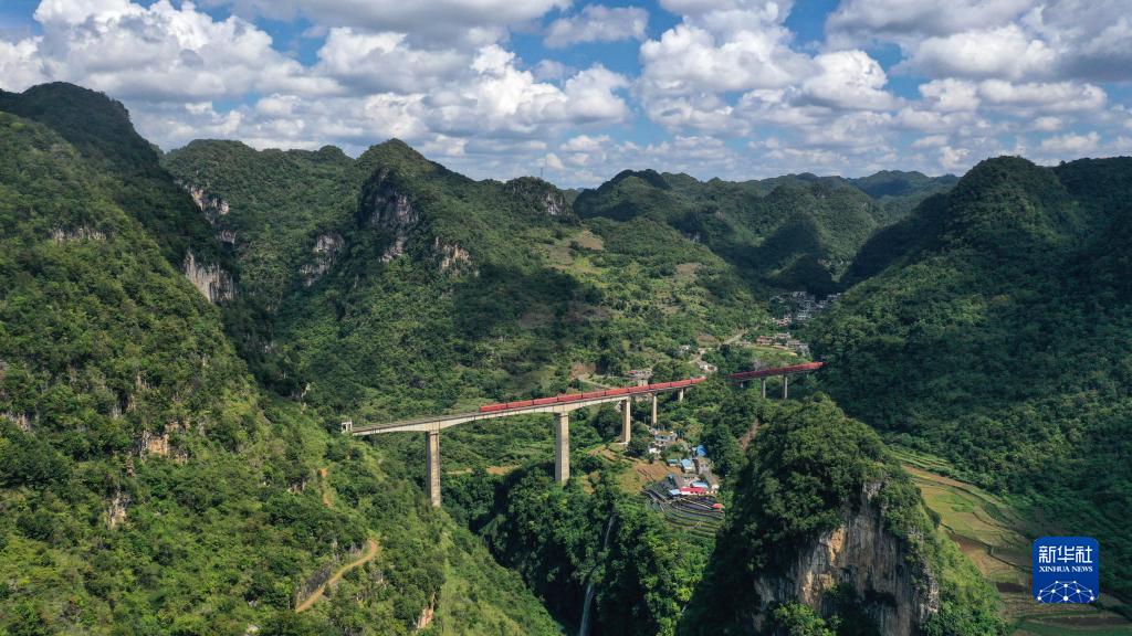 這是廣西南昆線清水河大橋秋日風光(10月4日攝,無人機照片)。