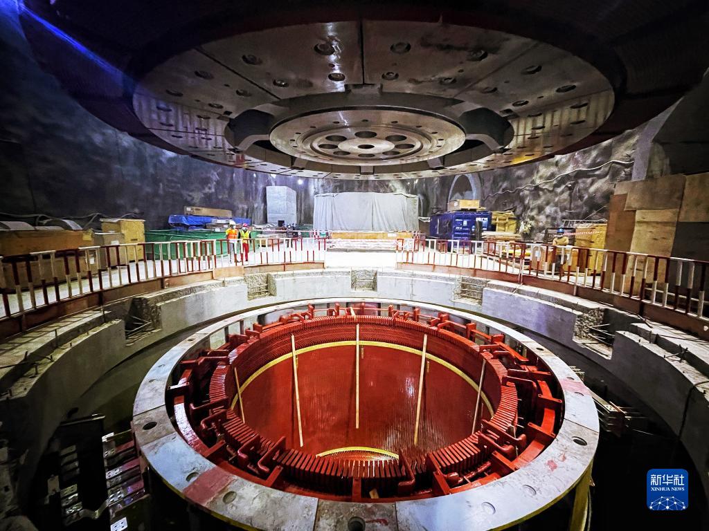 這是9月2日在巴基斯坦西北部開伯爾-普什圖省曼塞赫拉地區拍攝的蘇吉吉納里水電站發電機轉子吊裝作業現場。