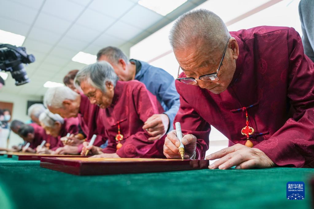 當日是重陽節,侵華日軍南京大屠殺遇難同胞紀念館邀請9位幸存者以及他們的后代,一起描壽桃、聽白局、聊今夕變化,共度重陽節。活動中,9位老人在手印盒中按下手印并簽名,留存歷史記憶。