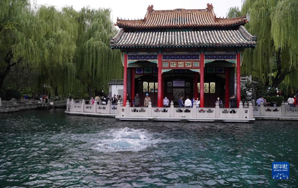 10月4日,游客在觀賞趵突泉。